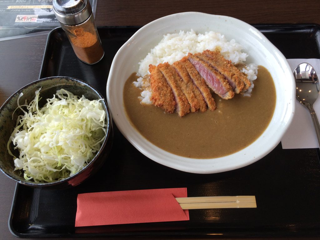 また、残念なことにカツと一緒に食べるとカレーが主張しすぎて牛カツの味が消し飛んでしまいます。
